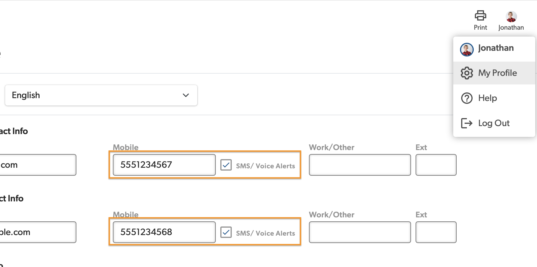Parents/Students must be opted-in to receive Text & Voice alerts. Opt in can be set from the parent login via (Account icon/photo) > My Profile > SMS/Voice Alerts for each respective recipient. A valid US/Canada number must be entered in the Mobile field. If using the mobile app, go to Account Icon > Settings.