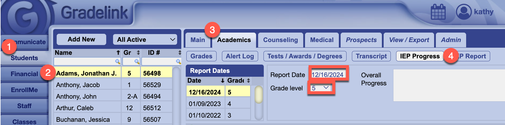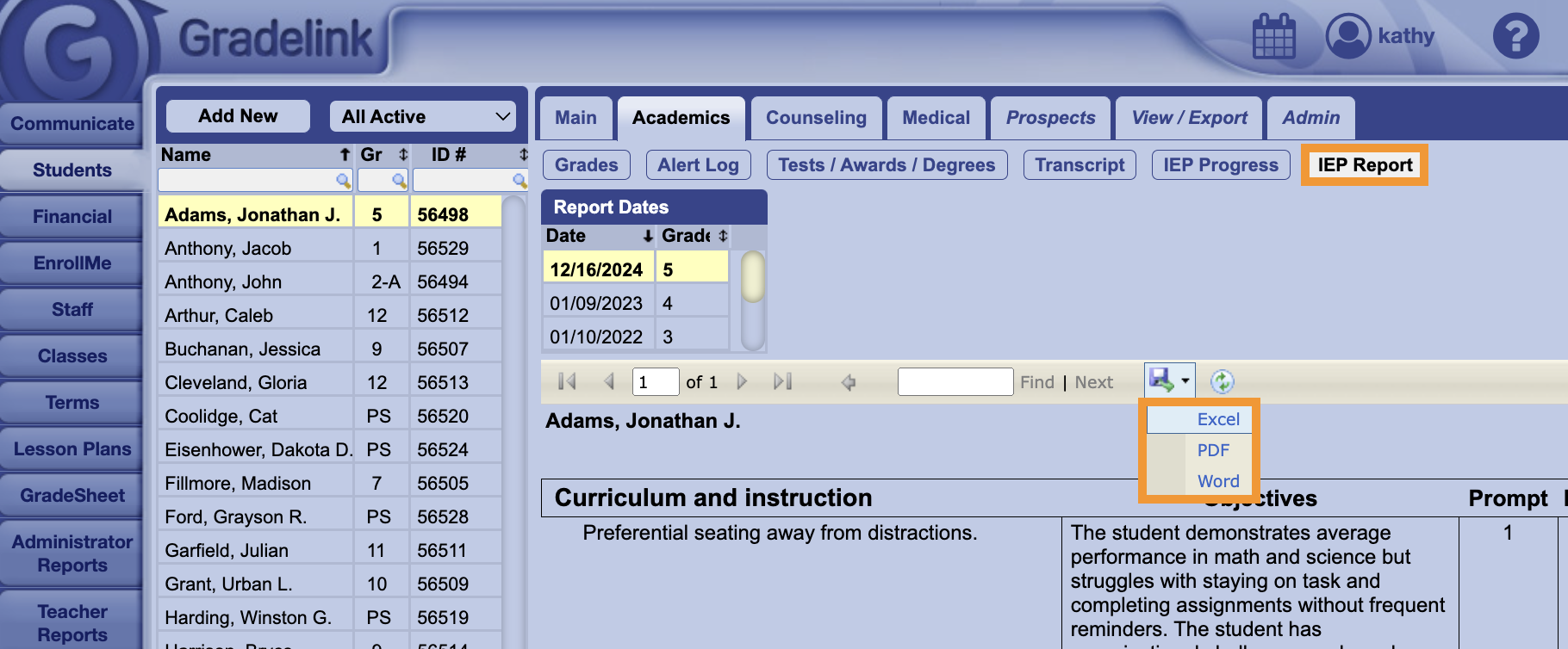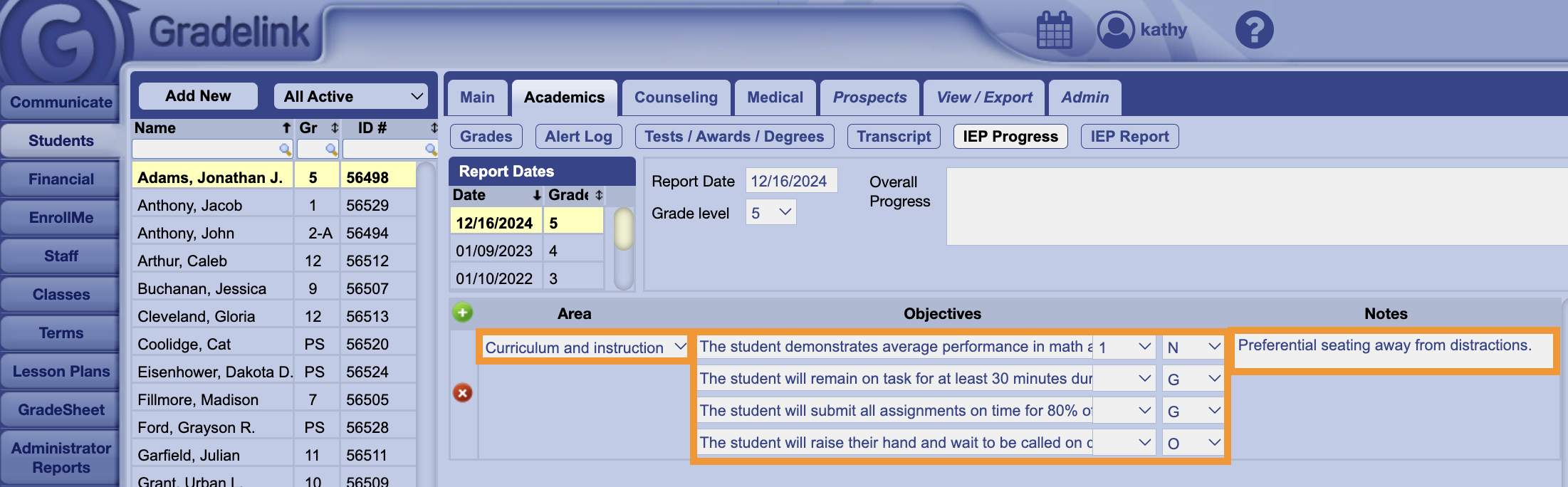 IEPs and 504 plans in Gradelink