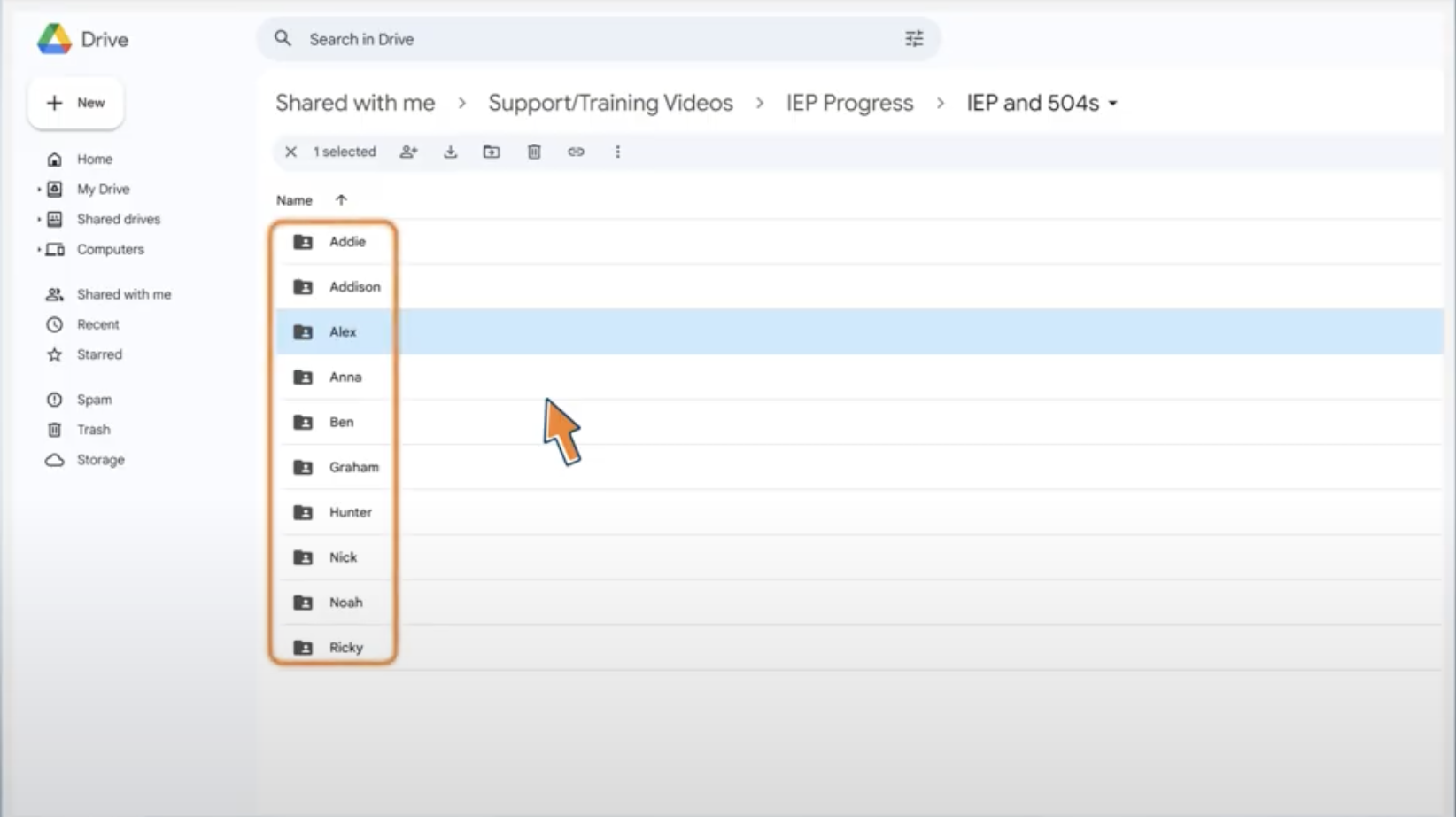 Upload 504 and IEP files to the respective folders.