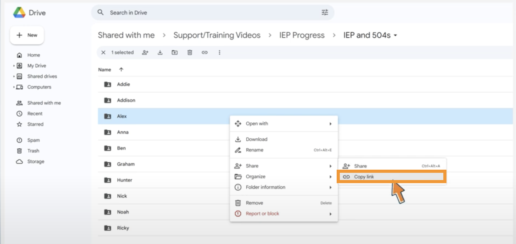 Copy the link to the folder and paste it into the student notes in Gradelink.