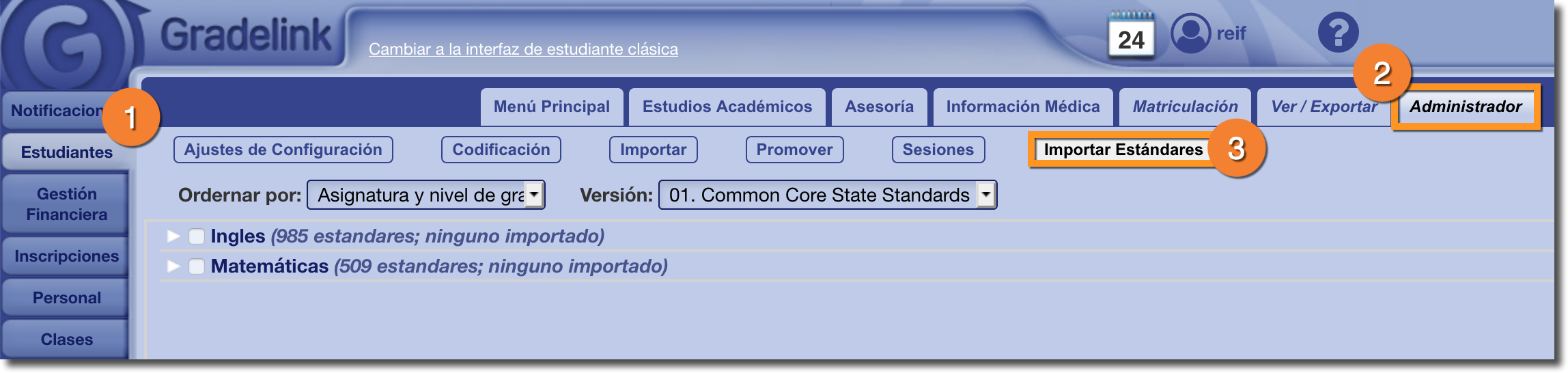 3. Haga clic en el botón Importar Estándares.