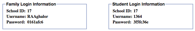 You may notice that even when you change a family or student password, the Login Info report displays a password that doesn't match what you typed.