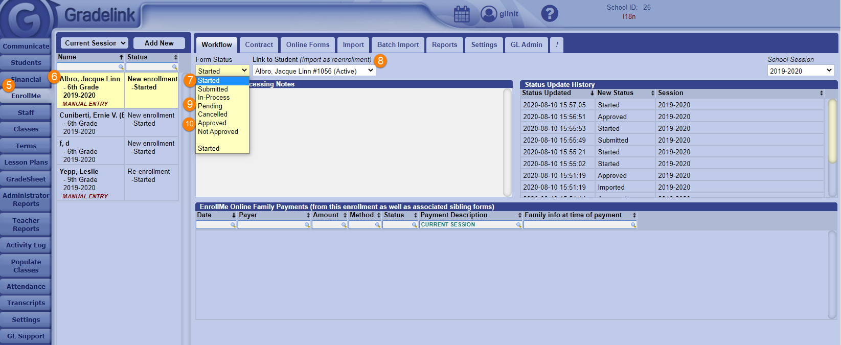 9. Change the Form Status to Pending for 5 seconds in order to allow Gradelink to prepare to sync the information to the student profile.