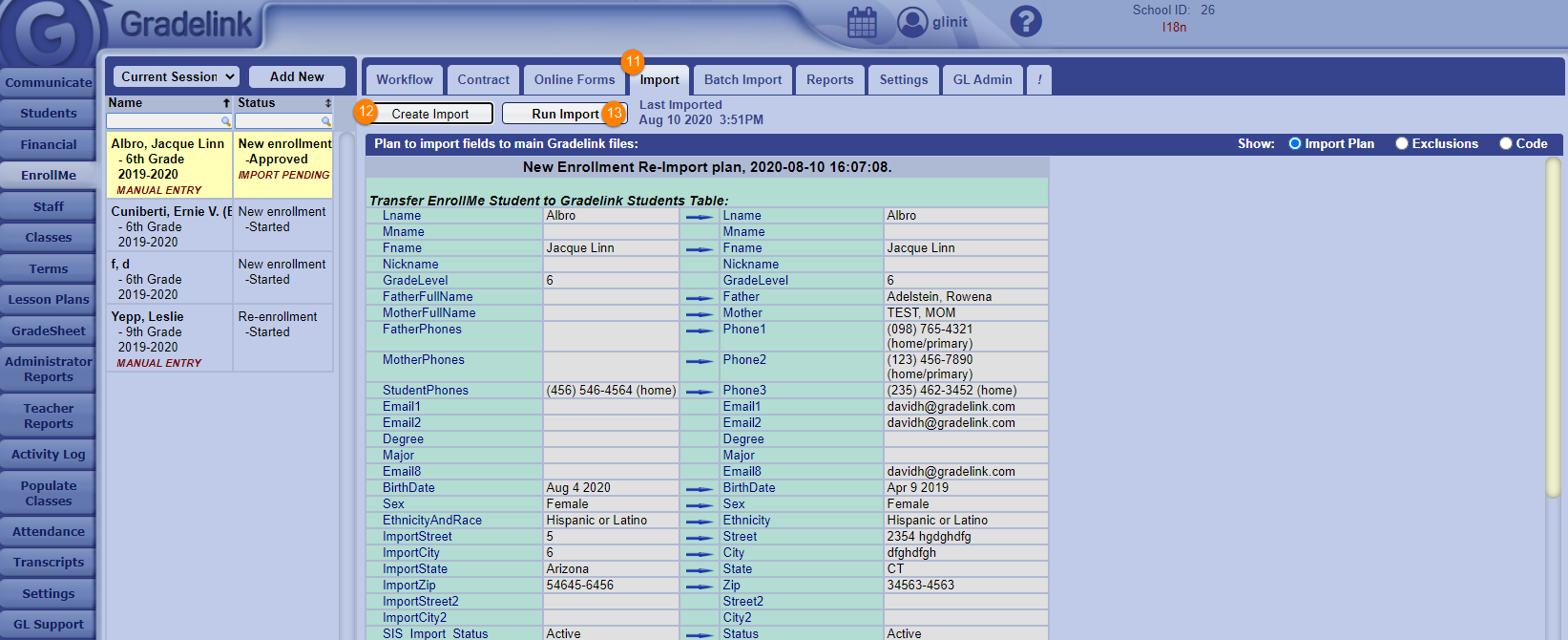 Occasionally, an application for an existing student who was mistakenly re-enrolled as a new enrollment may get imported into the Students tab of Gradelink, causing there to be two student profiles for the student. If there is no academic or financial information in the newer student profile, you can merge the most recent information from the latest application into the existing student profile.