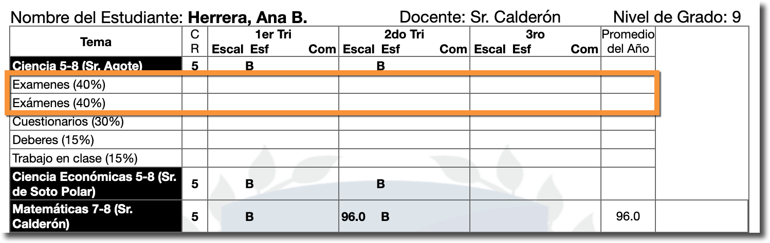 ¿Por qué los tipos de asignación aparecen dos veces en en el boletín de calificaciones?