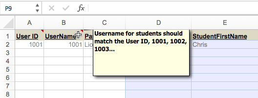 Data type refers to the format of the data in each column. The content saved in each column must match its intended format. For example, a date data type requires a date formatted as mm/dd/yyyy and any other date format, such as “May 20th”, would not be valid. The data type and an example of the data type are provided as a comment on each column name. Mouse over the column heading to view the comment.
