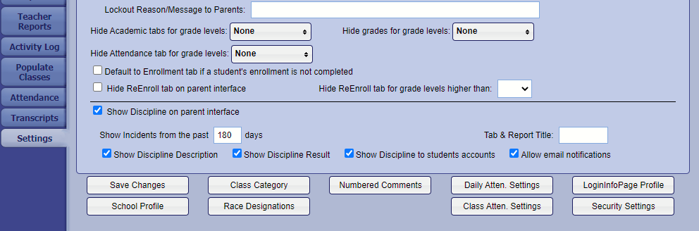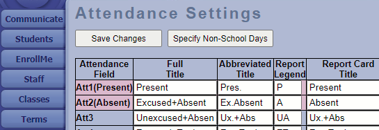 Assigning Ed-Fi Event Categories to Gradelink Calendar Events is easy: first, go to the Settings tab and click on the Daily Attendance Settings button near the bottom of the page.