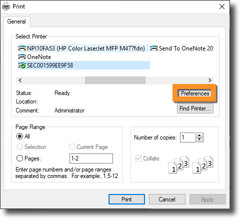 Next, click on the Preferences button.
