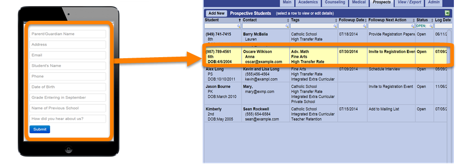 The Prospective Student Form can be used on any device with internet access, including mobile devices and tablets. It's an ideal tool for capturing prospects during events such as Open Houses or