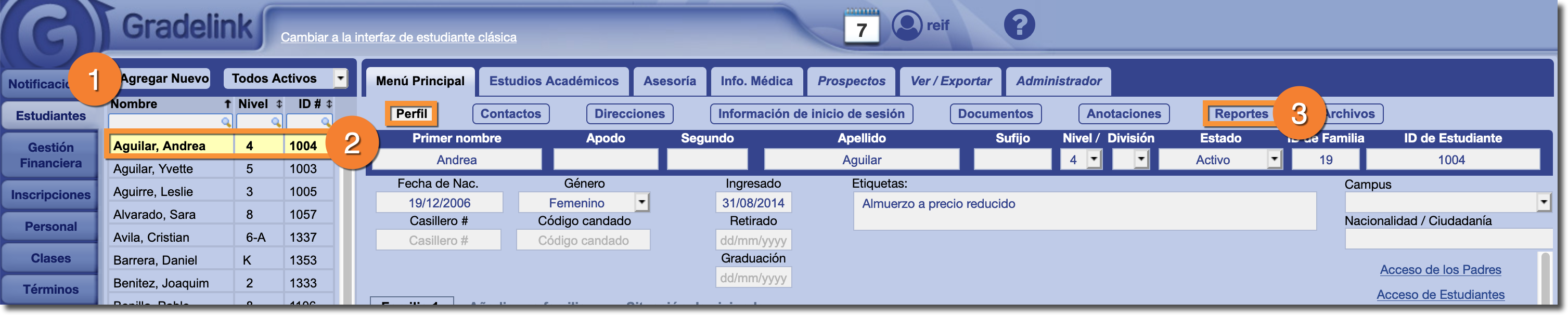- Seleccione el estudiante o los estudiantes para los que desea generar un reporte