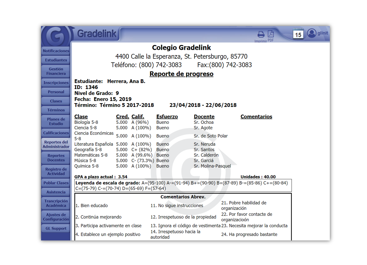 Los informes de progreso son utilizados tradicionalmente por las escuelas durante el punto medio de un término. Los Informes de progreso son menos dinámicos que los Report Cards, pero Gradelink los mantiene increíblemente personalizables.