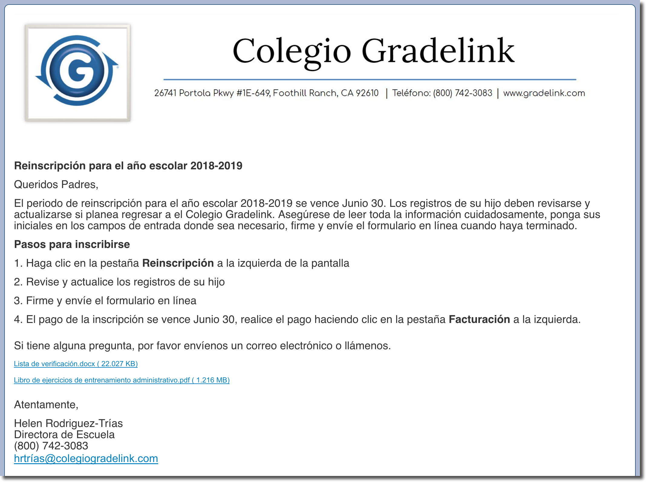 Estas Páginas en Gradelink, E-mail y nuestro calendario integrado forma una poderosa plataforma de comunicaciones.