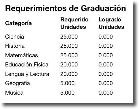 Los Requisitos de Graduación incluyen un número específico de Unidades/Créditos Requeridos, y al completar una Clase elegible, los estudiantes tendrán que las Unidades/Créditos de esa Clase cuentan para cumplir con el Requisito de Graduación apropriado.