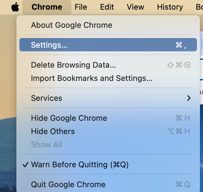 1. Open Google Chrome Settings