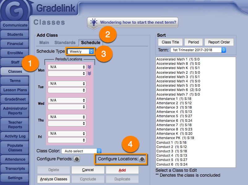 1. Click on the Classes tab.