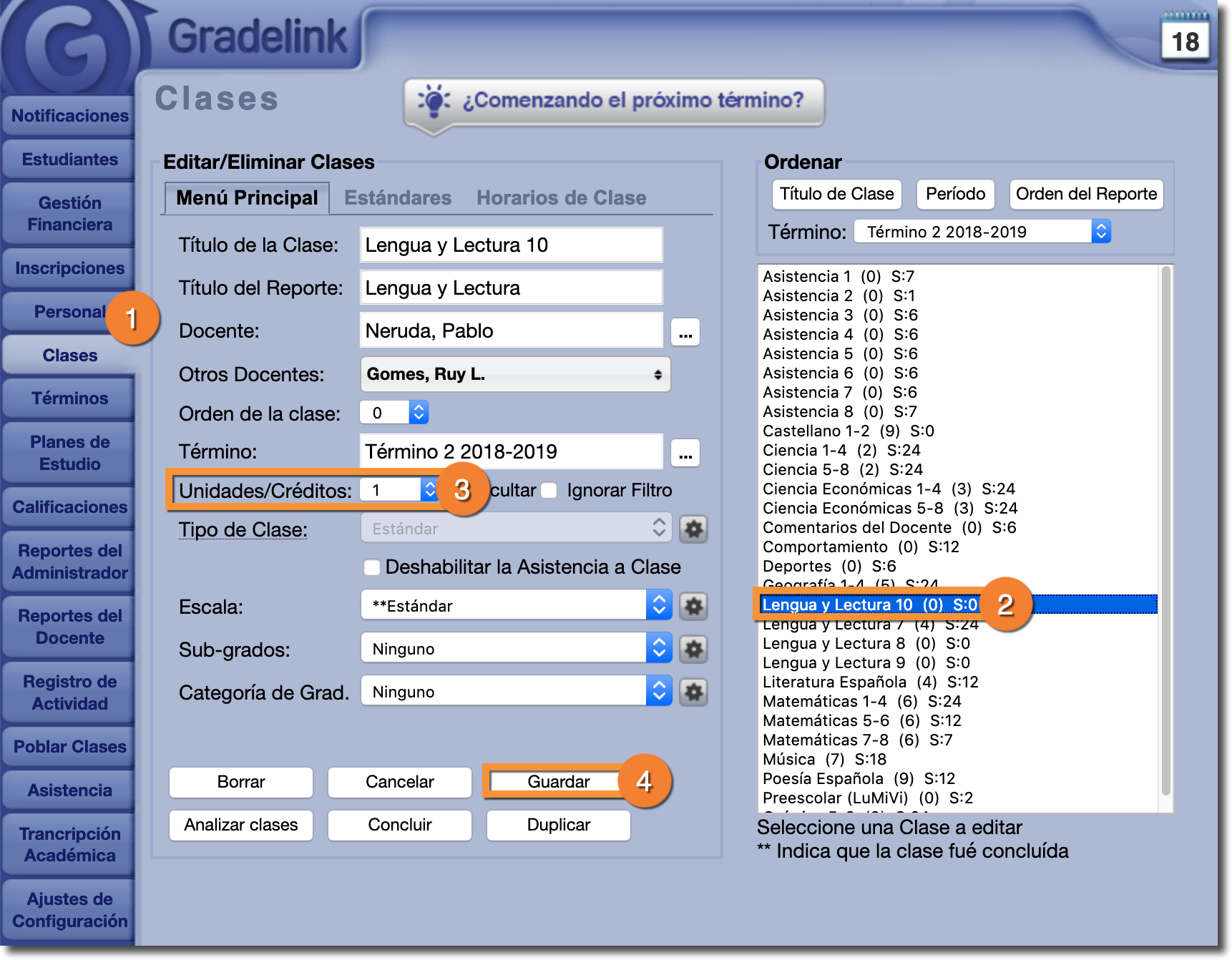 Gradelink no solo promedia el GPA de cada clase al calcular el GPA general. Como resultado, es increíblemente importante que cada clase tenga el número correcto de unidades/créditos. De hecho, este es el lugar más común para los errores con el cálculo del GPA de un estudiante.