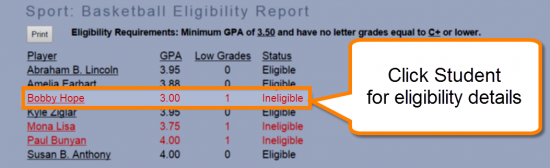 Sports Eligibility Reporting and Alerts for Coaches/Teachers