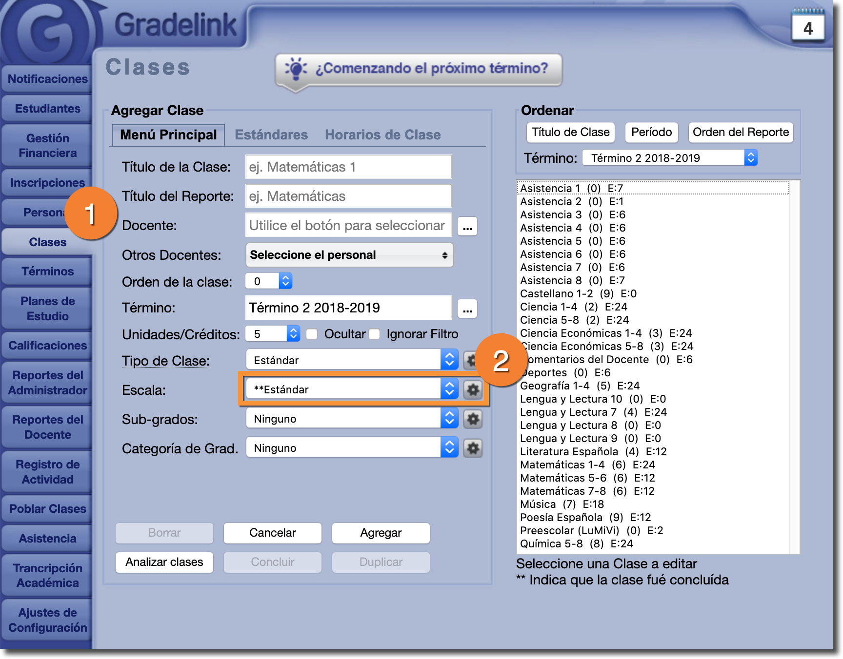 2. Luego, haga clic en el icono con forma de engranaje al lado del menú de escalas de calificación.