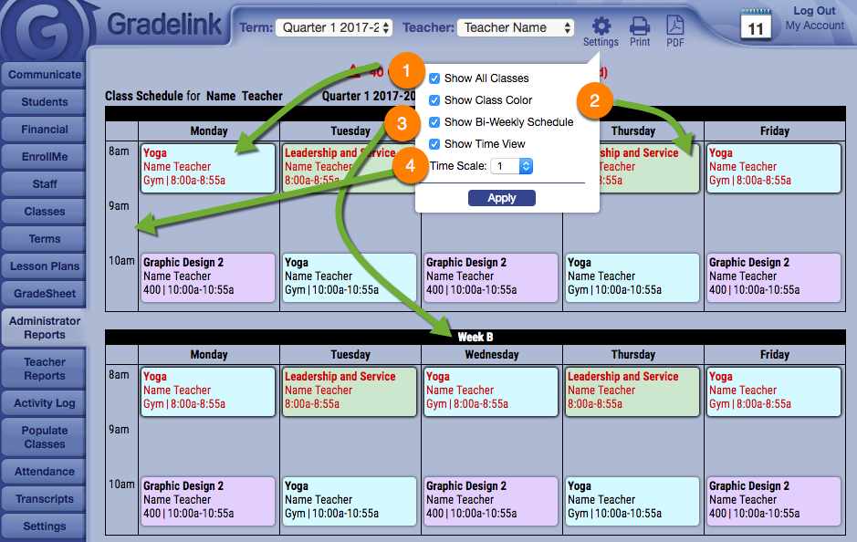 3. Show Bi-Weekly Schedule will show the second week if the second week is different.
