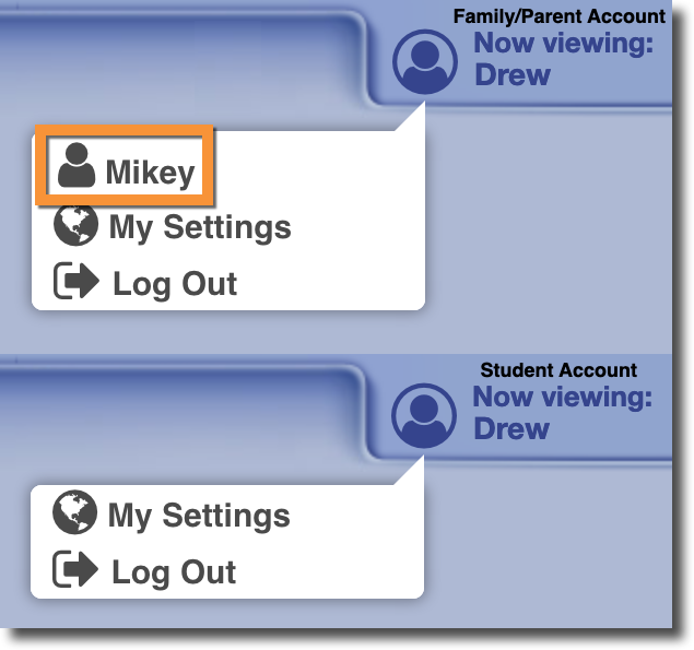 Second, if a family has multiple students enrolled in the school, then the Family/Parent Account will be able to switch between siblings without having to log out and log back in.