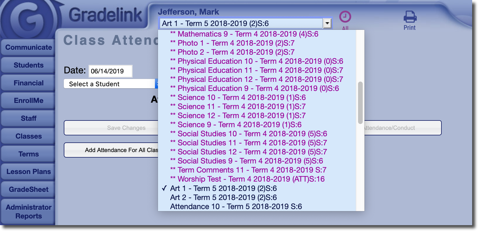 For administrators, it's important to note that Gradelink automatically hides terms that have an End Date greater than 999 days from the current date. This feature is designed to reduce clutter in the interface for administrators and teachers, and the specific cutoff value can be adjusted if you wish. For more information, please click here.